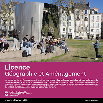 L'IGARUN propose une Licence Géographie et Aménagement en 3 ans permettant d'acquérir les bases de la discipline, pour poursuivre vers une spécialisation en Licence professionnelle ou en Master.